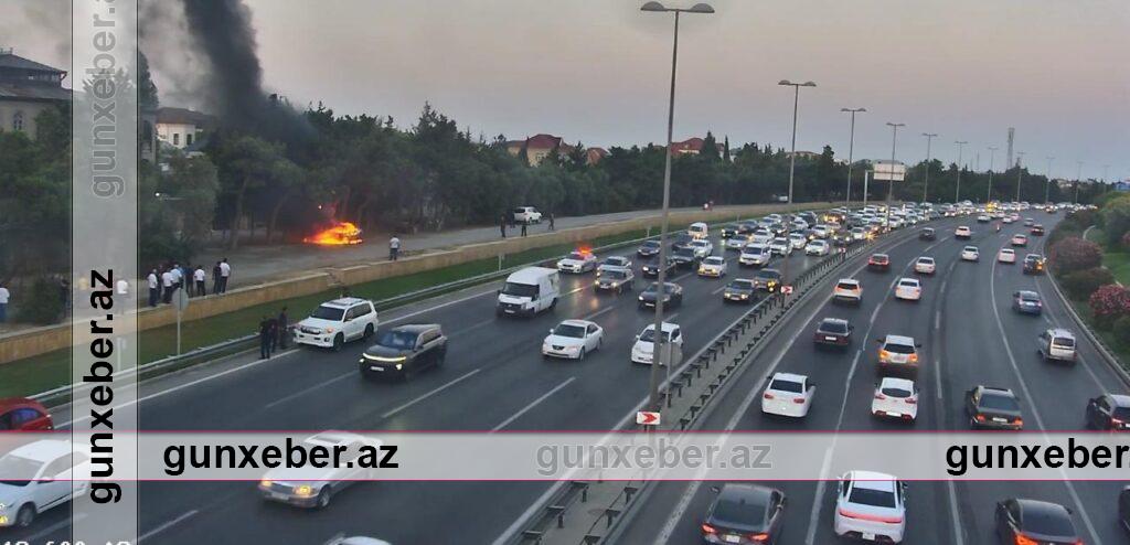 Sabunçu rayonunda Aeroport şosesi üzrə köməkçi yolda minik avtomobillərindən birində yanğın baş verib.