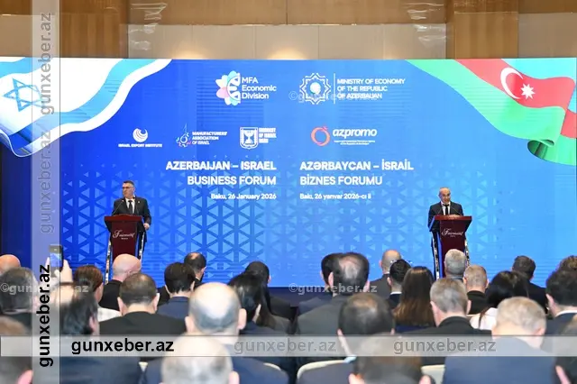 Bu gün, həmçinin Azərbaycan-İsrail biznes forumu keçirilib. Tədbirdə hər iki ölkədən rəsmi şəxslərlə yanaşı, sənaye, tikinti, əczaçılıq, kənd təsərrüfatı, texnologiyalar, su təchizatı və idarəçiliyi, nəqliyyat-logistika, kibertəhlükəsizlik, bankçılıq, turizm və digər sahələrdə fəaliyyət göstərən 100-dən çox şirkət nümayəndəsi iştirak edib.