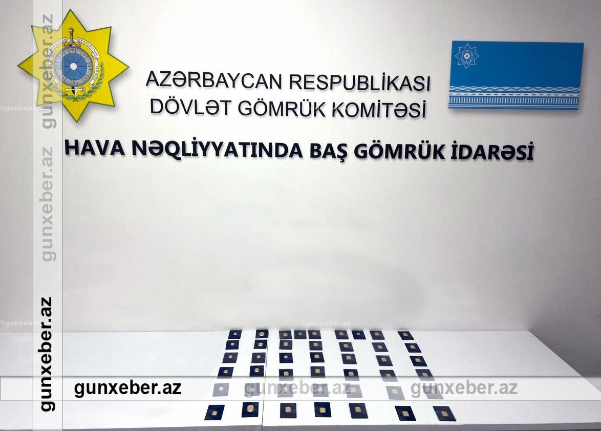 Qeyd edilib ki, Dubay-Bakı aviareysilə gələn Azərbaycan Respublikasının vətəndaşının çantalarına stasionar rentgen qurğusu vasitəsilə baxış keçirilib və monitorda şübhəli təsvirlər müşahidə olunduğundan ona məxsus əl yükləri gömrük yoxlamasına cəlb edilib. Yoxlama zamanı çantalardan birində gömrük orqanına əvvəlcədən bəyan olunmayan, ümumilikdə çəkisi 372,5 qram təşkil edən 44 ədəd “PAMP” markalı qızıl külçələr aşkarlanıb.
