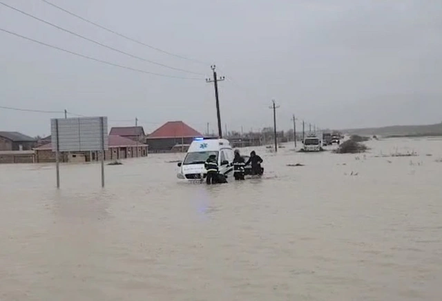 Qeyd edək ki, kadrlardan da göründüyü kimi, köməyə gedən təcili tibbi yardım avtomobili də suda batıb.