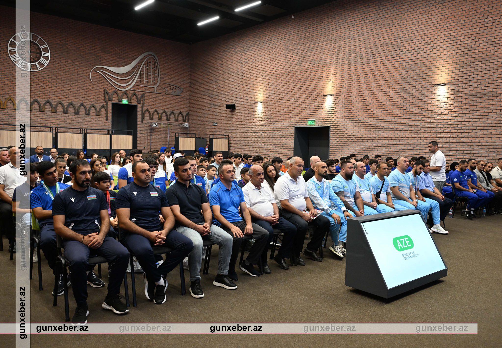Gənclər və idman naziri Fərid Qayıbov ay ərzində beynəlxalq yarışlarda yüksək nəticələr əldə etmiş idmançılarla görüşüb. Azərbaycan İdman Akademiyasında təşkil olunan mərasimdə idmançıların məşqçiləri də iştirak ediblər.