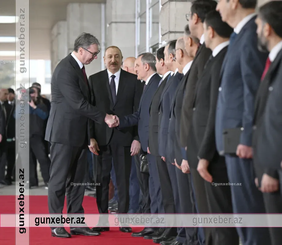 Serbiya Respublikasının Prezidenti Aleksandar Vuçiç Azərbaycan Respublikasının Prezidenti İlham Əliyevi qarşılayıb.